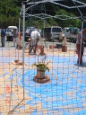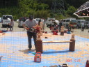 今年は女の子も参加し、暑い中、がんばって作りました。(2007年8月7日) |