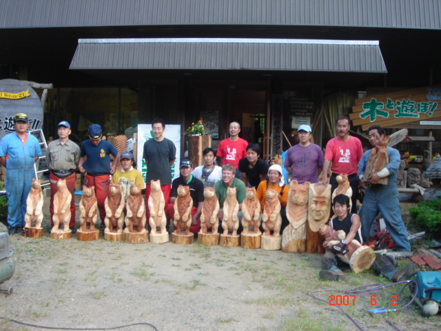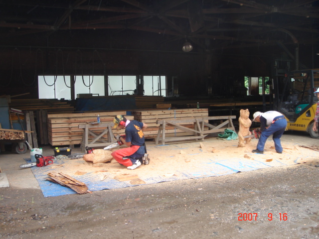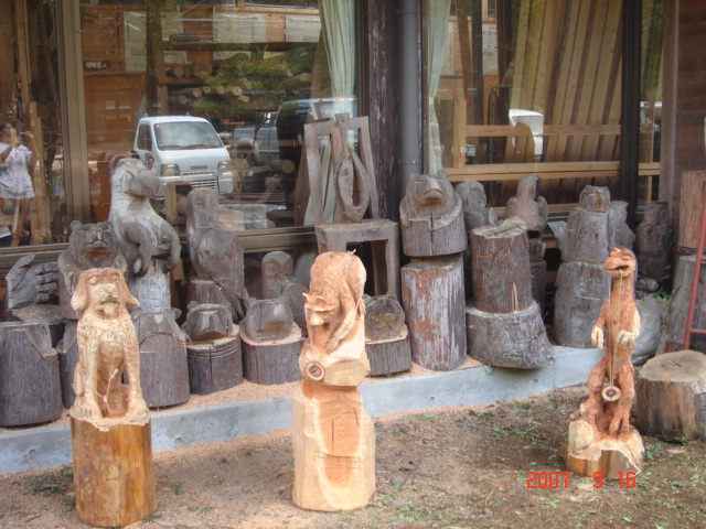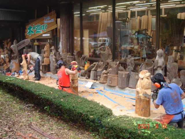 本郷発展会のご協力により、各商店さんのチェンソーアートを作成しました。 |