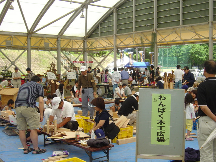 ドーム内の様子 JA愛知東による餅つきや地元森林組合による木工広場などドーム内も賑やかです。 |